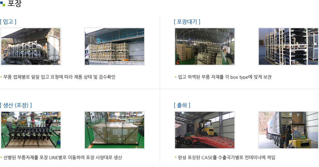 조립 후 적입하여 포장된 PALLET는 해외공장으로 운송된다.