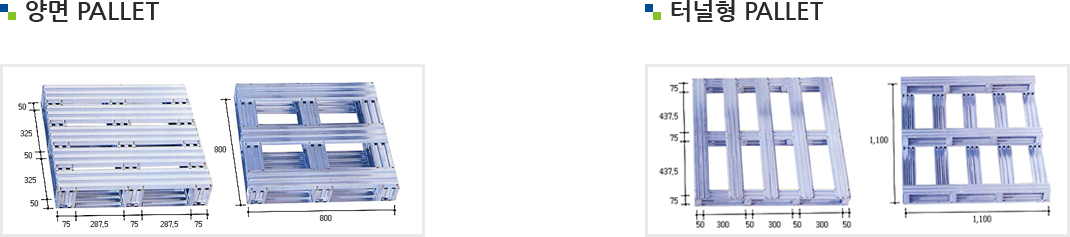 | 특징 | 지게차 4방향 진입가능 / 가공상판, 하판 추가기능 | |||